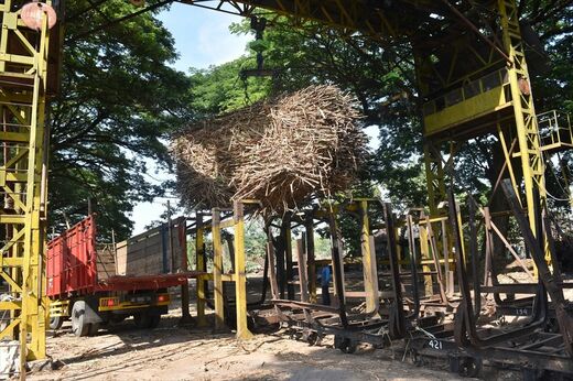 同工場はフィールド(サトウキビ畑)の線路はなくなっているが、工場敷地内だけは鉄道輸送を残している。これは、工場自体はオランダ時代からほとんど手を加えられておらず、トラックが物理的に内部に入れないからである。トラックに積み込まれてきたサトウキビは、ヤードのクレーンでローリー(運搬用台車)に積み替えられ、機関車がローリーを工場に押し込み、また空になったローリーをヤードに引き出してくる。物々しいトラクターも豪快にローリーを押し込んでいるが、転回に十分な広さがなかったり、ぬかるみで入れない部分があったりするようで、完全に機関車を置き換えるわけにはいかないようだ。