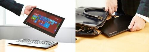 dynabook R82 CPU:インテル(R)Core(TM) M-5Y71 vPro(TM)プロセッサー OS:Windows8.1 Pro Update メモリ:4GB SSD:128GB ディスプレイ:タッチパネル付き 12.5型 フルHD 質量:約1.41キログラム バッテリー駆動時間:約10時間*1