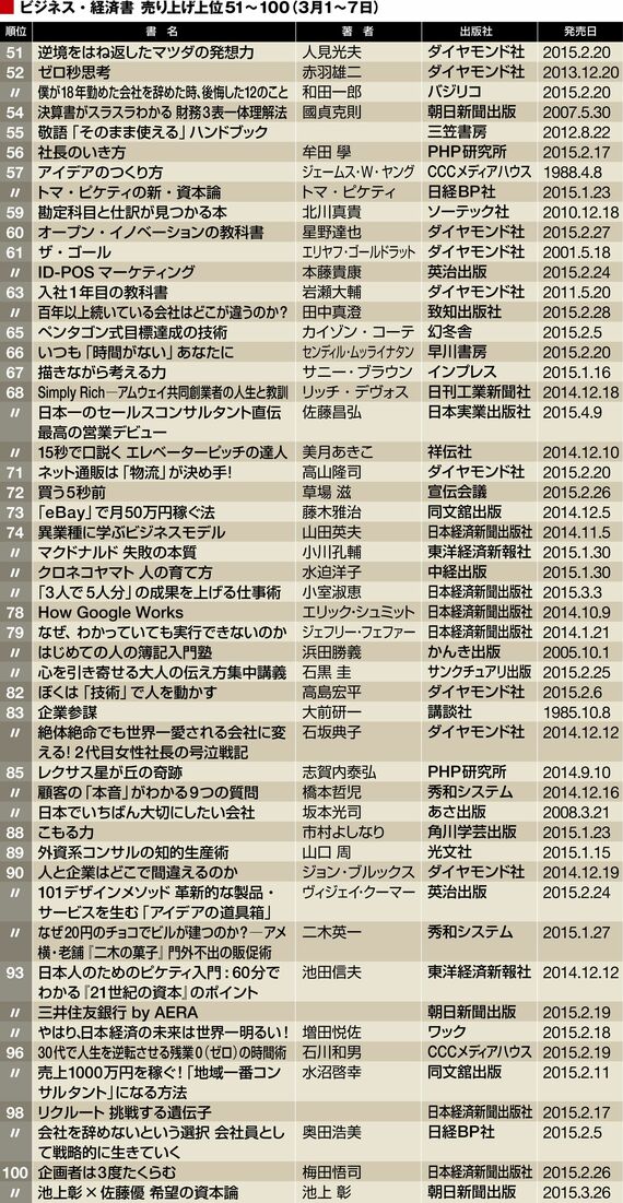 ライフ #Amazon週間ビジネス・経済書ランキング 前の記事 次の記事 これが、アマゾンでたくさん売れた200冊だ 2週連続で「エクセル術」がトップに 2分で読める 公開日時:2015/03/11 06:01 東洋経済オンライン編集部 フォロー 1/5 PAGES 2/5 PAGES 3/5 PAGES 次ページが続きます:【次の50冊は?】 4/5 PAGES 5/5 PAGES