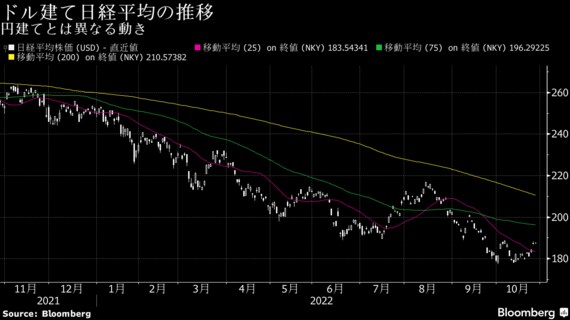 海外勢からみた日本株の価値は目減りしている。今月の外国為替市場で円相場は対ドルで32年ぶりとなる151円台を一時付け、2月末の115円から3割も円安に水準を切り下げた。この間に日本株の水準が変わらなかったとしても、ドルで運用している海外投資家にとれば為替面だけで3割超下落した計算になる。