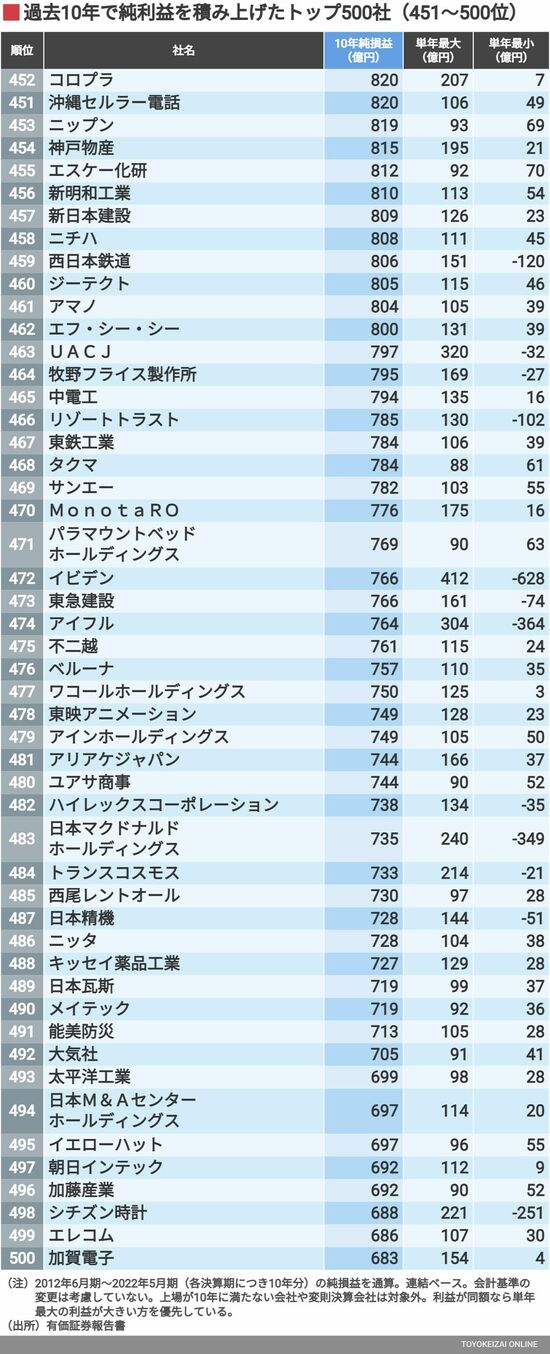 政治・経済・投資 過去10年で純利益を積み上げたトップ500社 最新版では上位60社の10年利益が1兆円超え 3分で読める 公開日時:2022/10/31 05:40 田中 久貴 東洋経済データ事業局 フォロー 1/11 PAGES 2/11 PAGES 3/11 PAGES 4/11 PAGES 5/11 PAGES 6/11 PAGES 7/11 PAGES 8/11 PAGES 9/11 PAGES 10/11 PAGES 11/11 PAGES