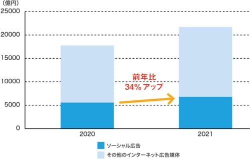 この数値は、SNS会員の爆発的な増加だけが理由ではなく、SNS内の広告が会員に受け入れられ、結果として広告としての効果が上がっていることが理由と考えて間違いありません。