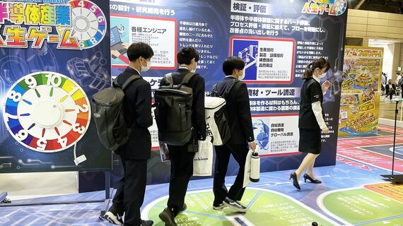 CEATECの『半導体産業人生ゲーム』に興じる学生たち(写真:記者撮影)
