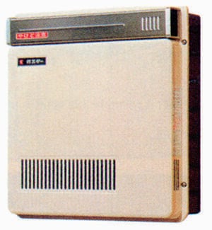 1980年代に入ると、お湯を大量に使うようになり、さらに進化をしていく。給湯能力の高い大型機器が開発されるが、集合住宅では省スペース化が求められた。電装技術の導入により、1980年には集合住宅のPS(パイプシャフト)内に設置するコンパクト型給湯機が開発される。