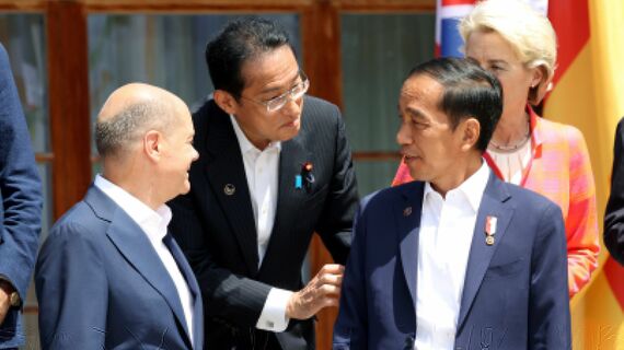 インドネシアは国際社会での存在感を高めている。写真は今年6月のG7サミットでのジョコ大統領(右)(写真:Bloomberg)