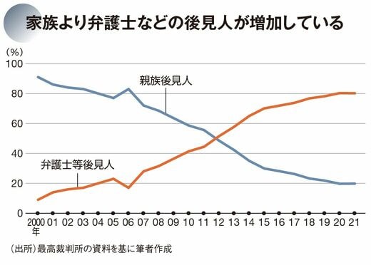 後見人の報酬は、被後見人の現金の資産額を目安に決められる。月額の費用では、管理する現金の財産額が1000万円以下は2万円、5000万円以下なら3万〜4万円、5000万円より上は5万〜6万円が相場だ。問題のある後見人は、月額報酬を増やすため、不動産や株券などの金融資産を処分しようとする。
