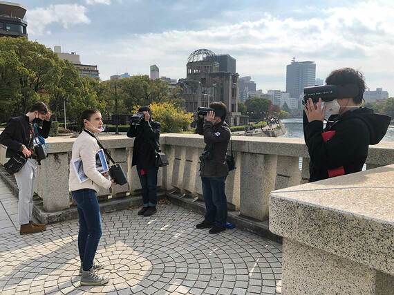 HMDを使う場合では、見えているものをあたかも「自分の体験」として受け取れるメリットを、歴史や地理の授業に生かせるのではと雨宮氏は考える。昨年の夏からは広島県の平和記念公園を、HMDを装着して歩き、1945年当時の出来事や環境を体験する歴史ツアーを始めた。