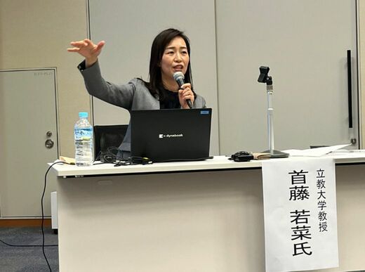登壇者の一人である首藤若菜・立教大教授は「通販の普及でドライバーの人数も相当数に上っており、個人事業主として働く者の保護の在り方を考える必要性が高まっている」と強調。事業者数が増えるほど単価が下落し、減収を補うため長時間労働を迫られるといった悪循環に陥るのを防ぐためにも「標準配送運賃や、乗務時間の上限などのガイドラインを設けるべきだ」と話した。