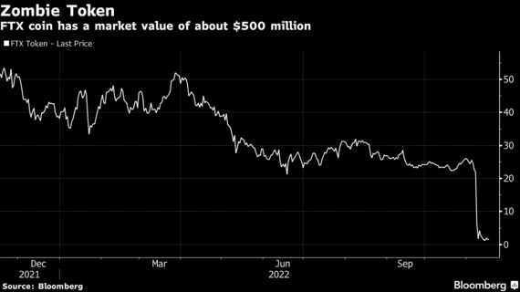 破綻した暗号資産(仮想通貨)交換業者FTXのトークン「FTT」は明らかに使い道がないにもかかわらず、依然として5億ドル(約700億円)の時価総額がある。