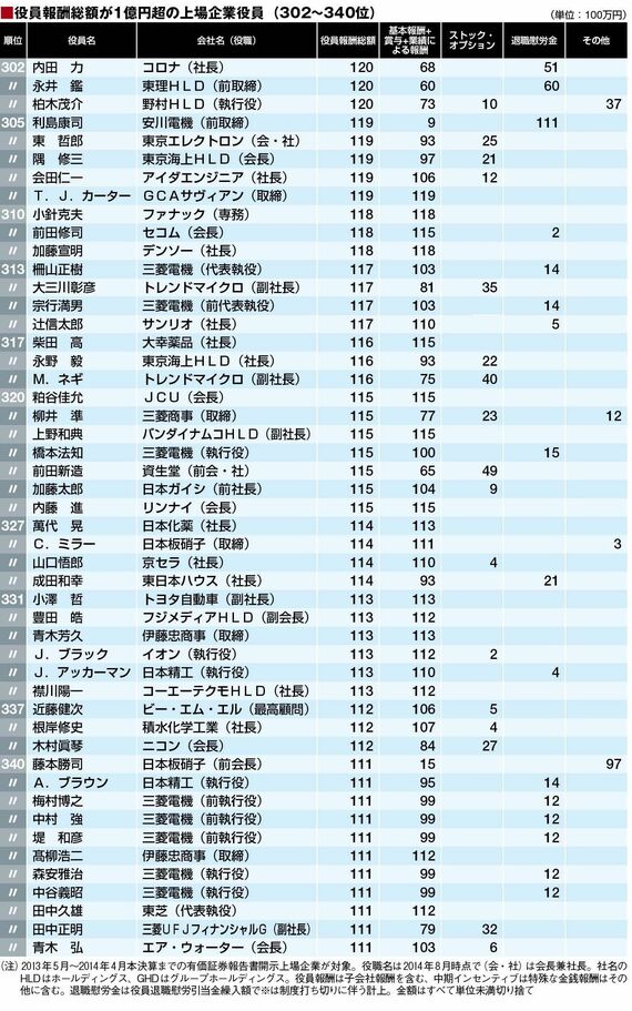 政治・経済・投資 "年収1億円超"の上場企業役員443人リスト 10億円超は5人!高額役員報酬ランキング 3分で読める 公開日時:2015/03/18 06:00 『役員四季報』編集部 フォロー 1/10 PAGES 2/10 PAGES 3/10 PAGES 4/10 PAGES 5/10 PAGES 6/10 PAGES 7/10 PAGES 8/10 PAGES 次ページが続きます:【351~400位は?】 9/10 PAGES 10/10 PAGES