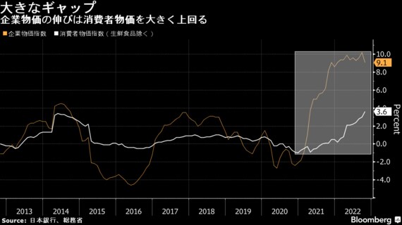岸田文雄首相は今年、エネルギーや食料品の価格高騰の影響を抑えるため一連の経済対策を策定した。大企業が賃上げを実施し、この動きが広く波及することを期待しながら、日銀が金融緩和を継続するための時間を事実上稼いだということだ。中小企業を中心に円安で膨らんだコストの吸収に苦慮する一方、大規模輸出企業などは円安の恩恵を受けている。多くの企業では今も我慢比べが続く。