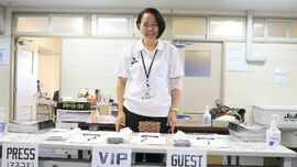 球場の受付では、蔵当志織さんが来賓、メディア、業者などの対応を取り仕切っている。沖縄水産の故栽弘義監督の娘さんだ。