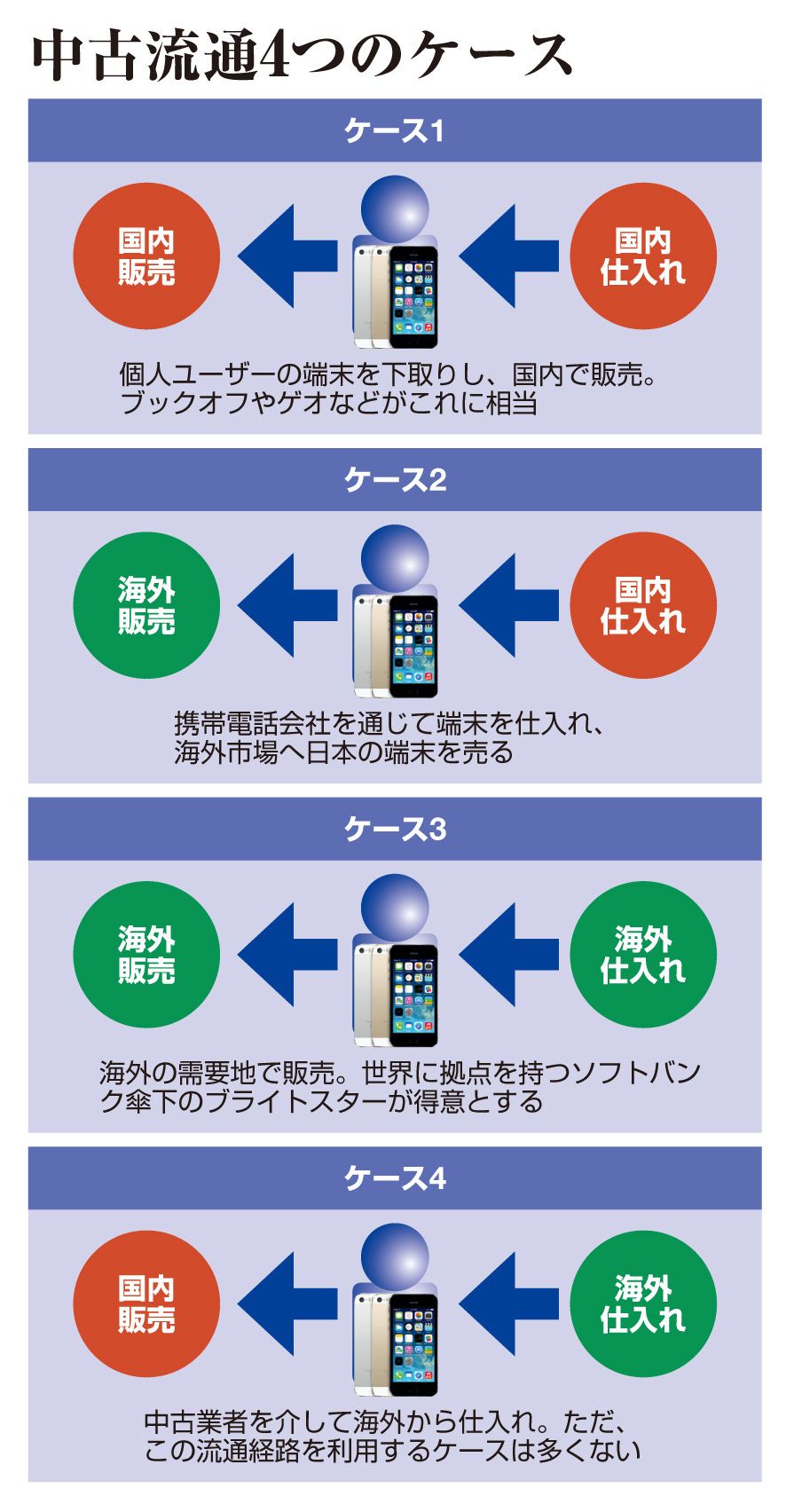ブライトスターはソフトバンクが14年1月に買収した会社。米携帯大手スプリントを含め、グループの下取り戦略を一手に担っている。世界50カ国に事業拠点を構え、200超の携帯会社、4000社超の量販店と取引がある。そんな同社で急成長しているのが、先進国で端末を仕入れて新興国に卸すという、中古端末のビジネスだ。