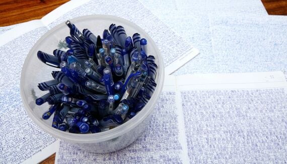 「鎮静効果」とは言い換えれば、リラックスできるということ。行動生理学の観点から、青には興奮した気持ちを鎮め、落ち着かせる効果があると言われています。青い文字を書き連ねることで、リラックスした状態で、勉強に集中することができるのです。