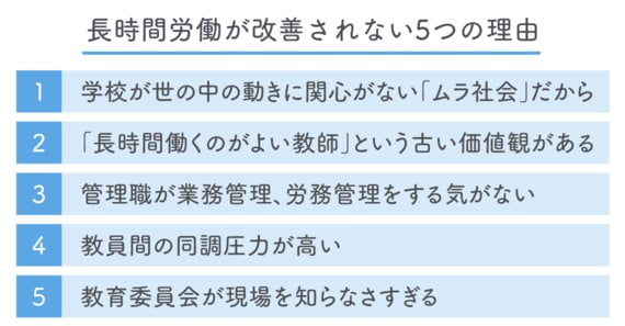 時間にとらわれずに情熱的に働くのがよい先生だという「金八先生」的教師像が、教員に過度な負担がかかる背景にあります。今こそ働き方の意識改革を進めて教師像を転換すべきです。私自身は部活動の顧問をやらないと訴えたことで状況を変えられました。教員に必要なのは自ら行動する力と、声を上げる力です。それが流れを変えると思います。