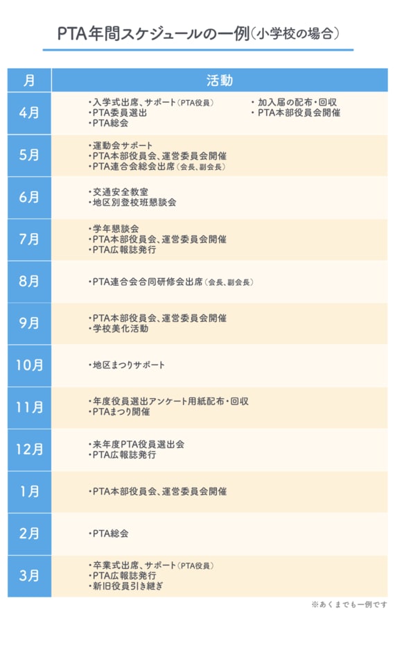 PTAの年間の活動スケジュール