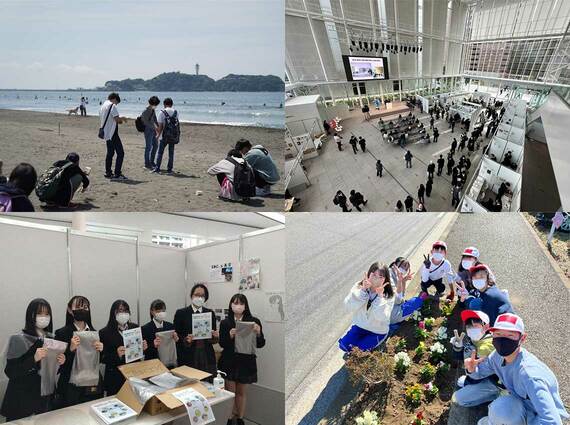 全員参加のプロジェクトは、通学路でもある環状4号線(海軍道路)沿いに花を植える「フラワーロードプロジェクト」と、遠足として実施した江の島の「ビーチクリーン」運動の2つだ。前者は地域の人の協力を得ながらの取り組みで、「横浜市環境活動賞」児童・生徒・学生の部で大賞も受賞した。後者は識者による講演でマイクロプラスチックに関心を抱いた生徒たちが、自発的に「やりたい」と声を上げて実現したものだ。
