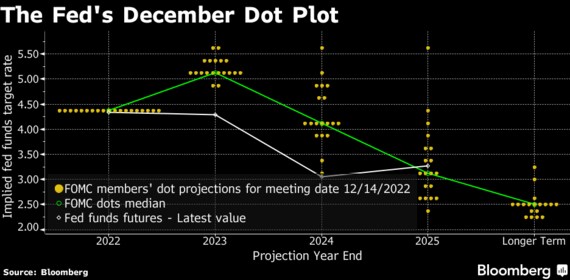 パウエル米連邦準備制度理事会(FRB)議長は14日の連邦公開市場委員会(FOMC)会合後の記者会見で、インフレ退治のための利上げ継続の必要性を強調した。だが2023年についてのウォール街の投資家の展望は議長のものとは異なる様子だ。