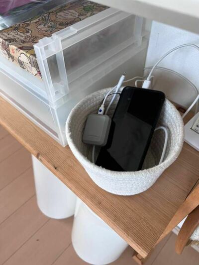 充電まわりでストレスがあるならば、一度「よく充電するものは何か」「その挿し口はいくつ必要か」を見極めて整理しましょう。もし同じ働きをするケーブルが複数あったなら省き、違うものは印をつけるなどしてわかりやすくします。また、ケーブルが長すぎると工夫が必要になるので、適した長さのものに変えましょう。スマホの機種によっては、ワイヤレス充電器を使っても。