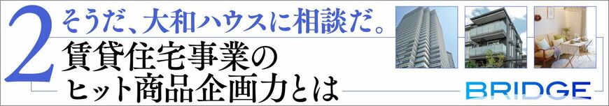 そればかりではない。「東南アジアで、日本人駐在員を対象としたサービスアパートメント事業を展開します」と堀氏の視線は海外にも向いている。もちろん、新しい分野でもオーナーのその先にいるもう一人の顧客をしっかりと見据えているのだろう。多様な引き出しから最適なアイテムを取り出すことによって入居者の満足度を高め、オーナーが喜ぶ賃貸住宅をカタチにする大和ハウス工業。「成長のエンジンは少なくありません」と語る堀氏のコメントのとおり、これからもさらなる新マーケットの開拓が成長を牽引していくことだろう。