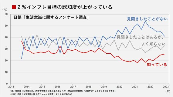 興味深い点は、同時に「物価安定目標」への認知度が上がっていることである。