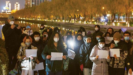 昨年11~12月、コロナ政策への不満から中国各地で「白紙デモ(白紙革命)」が行われた(写真:ロイター/アフロ)