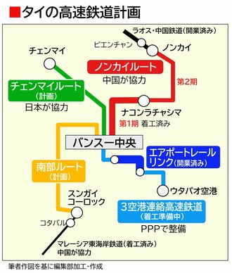 すでに着工しているのはノンカイルートで、第1期区間となるナコンラチャシマまでの間では一部区間に高架橋がお目見えしつつある。ただ、その先は未定である。3空港連絡ルートは中華系財閥企業が出資することが決まっているものの未着工だ。そして、チェンマイルートに関しては採算性の問題から事業化すら決定していない。ノンカイルートと異なり、貨物輸送を想定していないことがネックになっているといわれている。はたしてバンスー中央駅が100%の機能を発揮する日が来るのかは、現時点では定かでない。