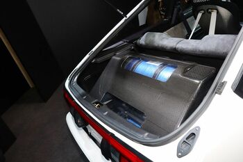 主な特徴は、水素燃料を使うために専用のインジェクターやフューエルデリバリーパイプ、プラグなどに変更されているが、可能な限り、もともと搭載している4A-G型エンジンをそのまま活かしている点だ。燃料となる水素は、FCVモデル「ミライ」用の高圧水素タンク2本を後方荷室に装備。改造規模を最小限にとどめることで、ノーマルのよさを最大限に残している。おそらく、BEV車よりも、ガソリン車らしい乗り味が楽しめるのは、このH2車のほうだろう。