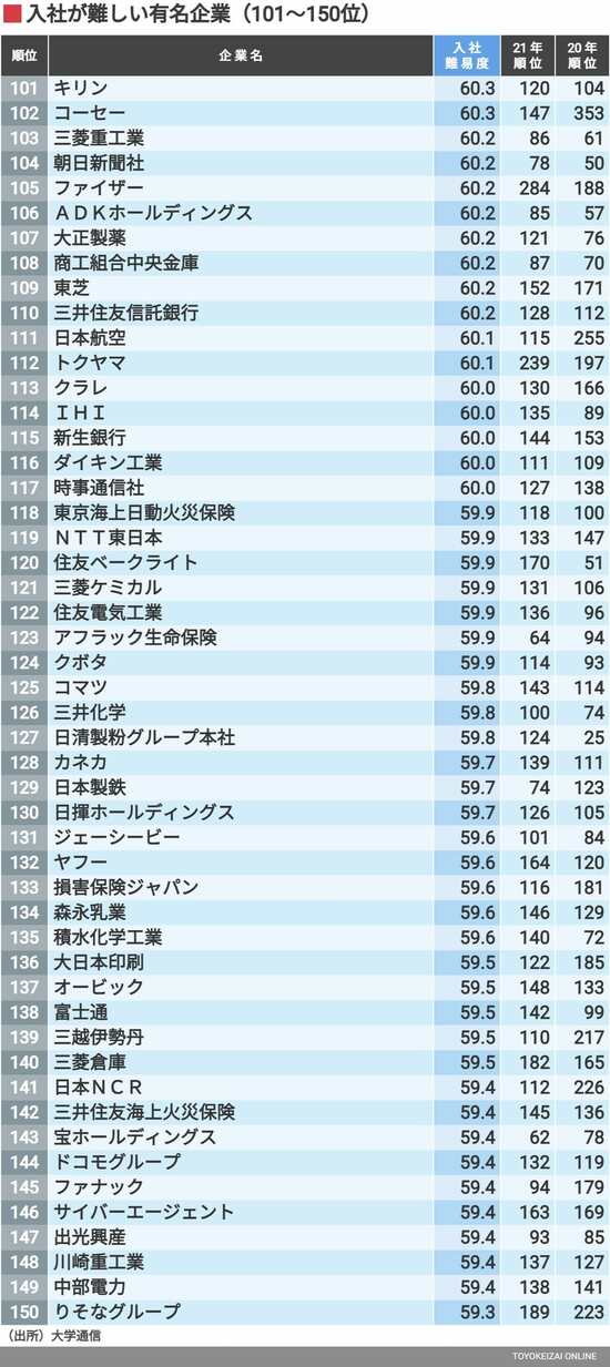 キャリア・教育 #就職四季報プラスワン 前の記事 次の記事 「入社が難しい有名企業ランキング」トップ200社 外資コンサルや商社が上位、右肩上がりの業種は 7分で読める 公開日時:2023/02/04 06:00 井沢 秀 大学通信 取締役情報調査・編集部部長 フォロー 1/7 PAGES 2/7 PAGES 3/7 PAGES 4/7 PAGES 5/7 PAGES 6/7 PAGES 次ページが続きます:【入社が難しい有名企業151~200位】 7/7 PAGES