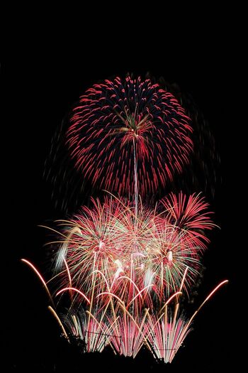 花火の評価基準は国によって異なるが、日本の花火の技術力は世界でもトップレベルにある。なかでもユニークなのが、変化菊と呼ばれる伝統的な打ち上げ花火で、花が開くように花火の色が変化する。その仕組みは玉が空中で爆ぜて、内部に入っている複数の星と呼ばれる火薬の粒が燃焼しながら広がっていく。星が光の尾を伸ばしながら放射状に広がるため、菊花型花火と呼ばれる。星の色が変化することで一度に異なる色が出せるのだ。