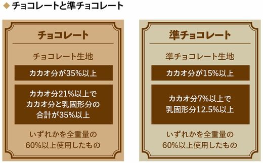 それともうひとつ、「カカオ分」が7%以上で「乳固形分」が12.5%以上のものも「準チョコレート」と呼ぶことできます。