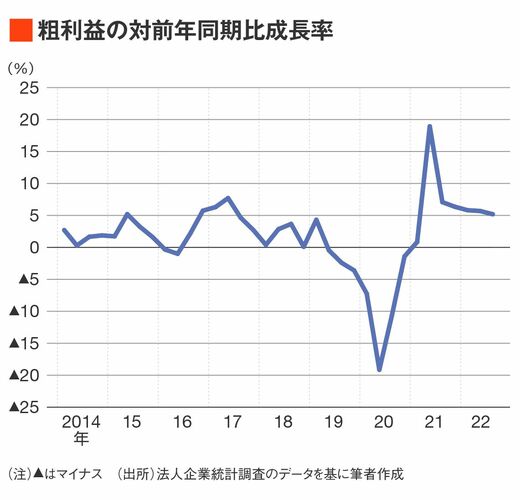 図表に見るように、2022年における粗利益の対前年同期比は、5%程度だ。