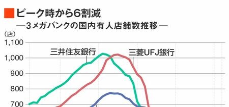 30年で6割減、3メガは「店舗」をどう減らしたか 三菱UFJが減少率首位、3行とも今や400店以下に