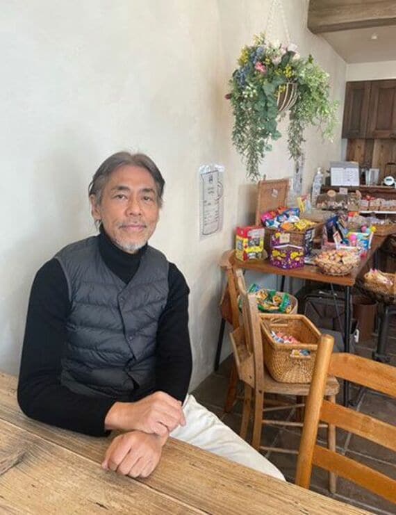 2021年9月から、不登校の父親向け「ぼちぼち・ちちの会」主催。 長男の不登校をきっかけに、不登校支援の活動を開始。 地元事業者の協力のもと、不登校向けイベントなどの企画運営も行う。写真の背景は毎週開催している駄菓子屋