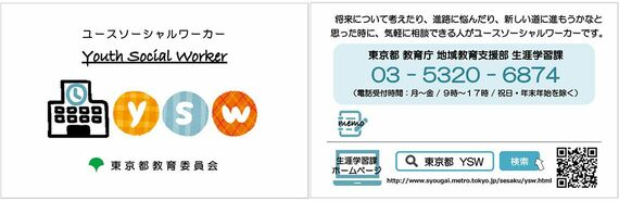 さらに、高校中退から2年以内を目安に、本人の希望があった際はYSWが支援する体制となっている。そのことを伝えるため、中退時には高校の教職員を通じて、相談窓口を記載した「YSWカード」を渡すようにしている。