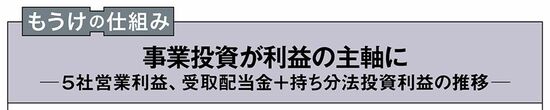 「事業投資・運営」は、出資を通じて事業会社の経営に関与し、そこから上がる利益を配当金などとして受け取る。2000年代以降、トレードに比べて事業投資の収益比率は高まってきた。
