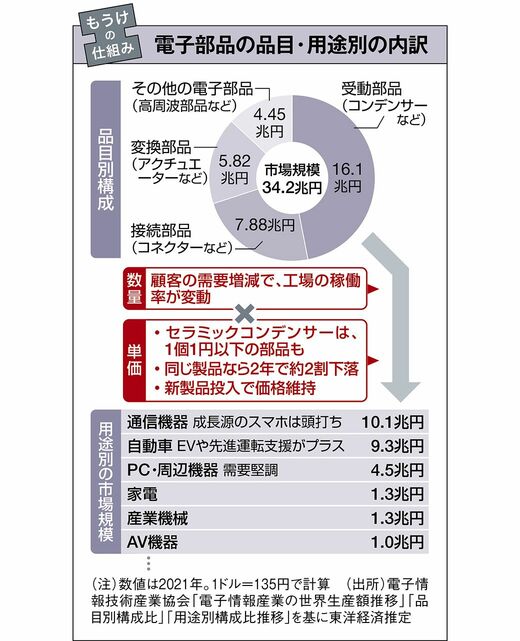 BtoBの製造業も同じことがいえる。電子部品は一般的に単価が安く、製品サイクルが早い。そのため生産数量を決める「客先の需要動向」が最大の収益決定要因となる。