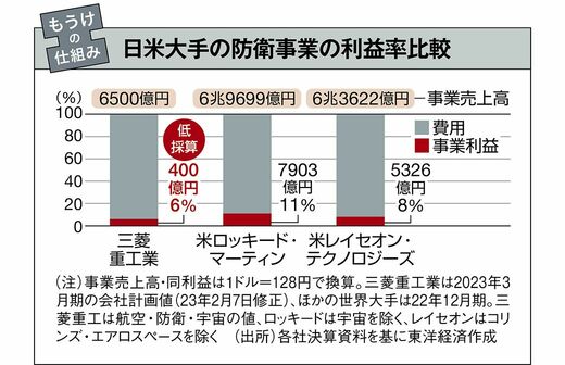 防衛|世界大手と比べて低採算の三菱