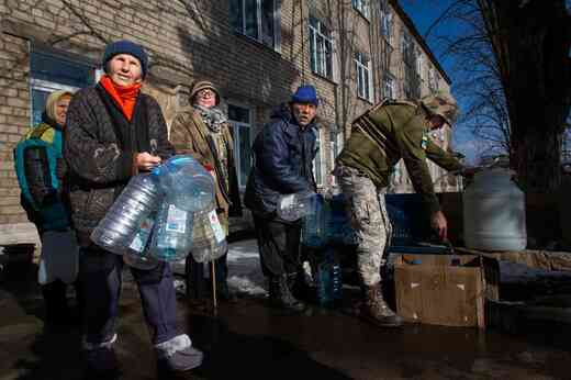 玄関の前で水の配給が始まった。後ろのほうで大きなペットボトルを5つも持った高齢の女性が並んでいた。ガリーナ・ミホディエヴナ、84歳。娘とともに診療所の地下で暮らしているという。
