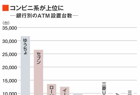 東洋経済の推計では、ここにゆうちょ銀とコンビニ系(セブン銀、ローソン銀、イーネット、イオン銀)を足した国内のATM設置台数は18万台強。コンビニ系4社のATMは約6万台であり、国内の3台に1台がコンビニATMとなる計算だ。
