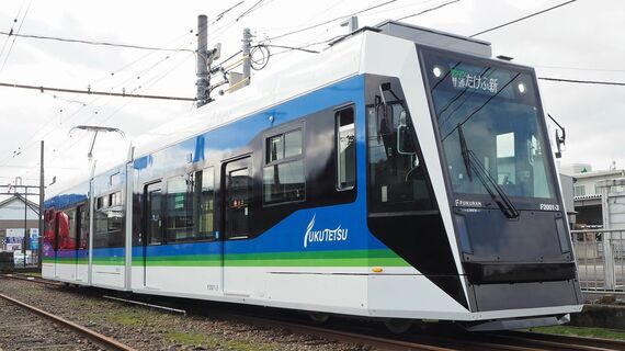 福鉄は、同県越前市のたけふ新と福井駅・田原町(ともに福井市)を結ぶ約21kmの福武線を運行する私鉄。同線は福井市内中心部は路面、ほかは専用の軌道を走り、路面電車と郊外鉄道の性格を併せ持つ路線だ。かつては一般的な鉄道車両を使っていたが、現在は路面電車タイプの車両を使用している。