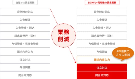 「SEIKYU+」の特長は、問い合わせと注文に対応するだけで取引が完結できることだ。これにより企業間決済に必要な与信や売掛金の回収に気をもんだり、請求書に不備がないか神経をとがらせたりすることなく、企業は本来のビジネスへ注力できる。また、売掛金を期日前に入金するオプションもあり、キャッシュフローも安定する。インボイス制度や電子帳簿保存法といった法改正にも対応するため、請求業務のフローやシステムを都度見直す必要がないのも大きなメリットだ。