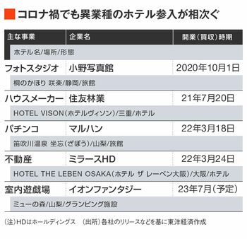 マルハン以外にも、ホテル業界に参入する異業種企業は後を絶たない。過去にも異業種参入は数多くあったが、最近の潮流は高級感のある宿泊施設を打ち出す企業が多いことだ。
