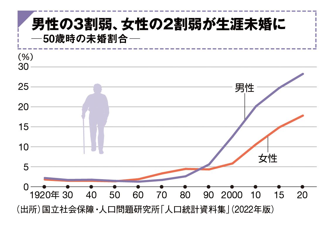 一方、男性の生涯未婚率が30年間で5倍に急上昇するなど未婚化が進んでいる。