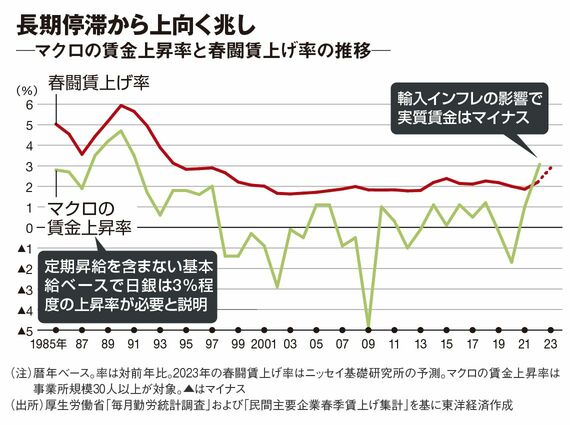 金融市場も今年の春闘には高い関心を寄せている。物価と賃金がダブルで上昇する好循環が実現するかどうかは、「2%物価目標」の達成を掲げる日本銀行の出口戦略を占ううえでも、大きな注目ポイントとなるからだ。