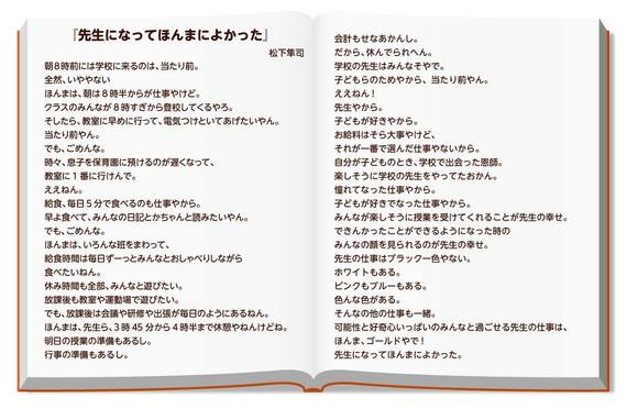 「『せんせいって』のラストでは、教員の仕事を“にじいろ”と表現しています。実はここ、学級通信の原稿ではゴールドにしていました。『金メダルでないとやっていられない』という思いから、自分のためにもそうしたんです。でも出版に当たっては、うそ偽りのない言葉にしたくて、人によってさまざまな捉え方ができる色に変更しました。教員の仕事にブラックな一面があることは紛れもない事実。ですが、もっと楽しい部分も世に知られてほしいというのが、教員という仕事を愛してやまない私の切なる願いです」