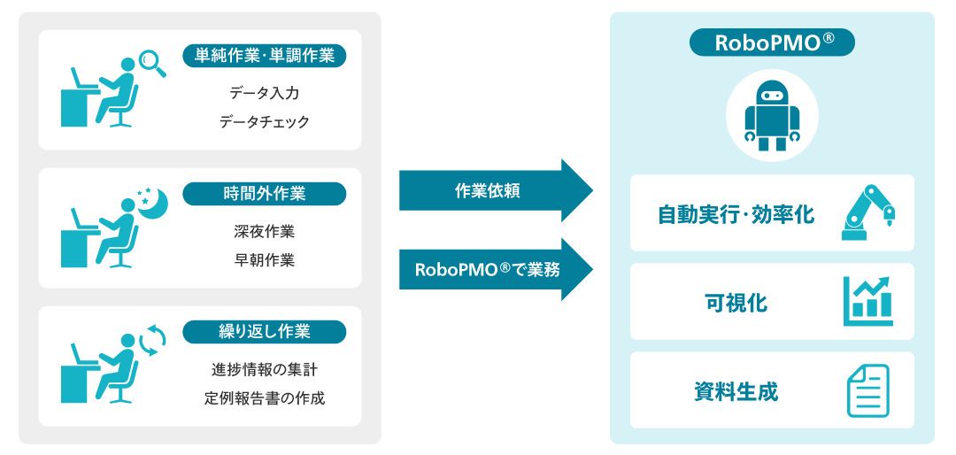 ビジネスイノベーションユニットが提供するプロジェクトマネジメントプラットフォームの特徴は、デジタルの力を活用している点だろう。同ユニットはサービスの本格展開に合わせ、プロジェクト管理自動化ソリューション「RoboPMO®︎」の開発に着手した。その狙いを吉原氏は次のように解説する。