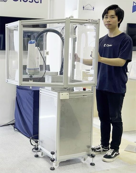 筑波大学発のAIロボティクスベンチャーであるCloserは2021年11月に設立され、現在2期目。これからまさに事業を本格化させようとしている企業だ。主力製品は工場の生産ラインの省人化小型ロボットシステムで、現在は慢性的に人手不足が続いている食品業界を中心に、生産効率化のためのロボット導入を提案している。