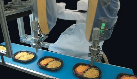 その1つ、協働型トッピングロボット「ニトロン」は1台で1時間当たり2000食分を処理できるスペックを誇る。すでに自社グループ工場で活躍しているが、ほかの弁当や惣菜工場への拡販を強化していく考えだ。