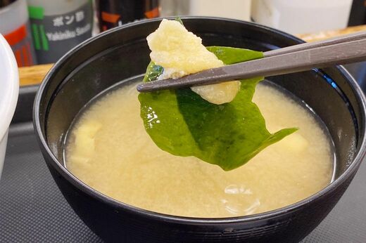 油揚げとわかめのシンプルなみそ汁は、あえて薄めの味付けになっており、濃い味のメニューが多い「松屋」メニューの箸休めにぴったりのナイスバランス。素朴なみそ汁の味わいは、バタバタした朝時間にひとときのほっこりを与えてくれます。